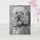 Impressão preto e branco de um cavapoo tomado da pintura original dos artistas de seu cão.