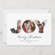 Um cartão de Natal com colagem de fotos e um grande letreiro de alegria em uma fonte negrita simples em um cartão branco. Personalize este cartão com 3 fotos e uma saudação personalizada.