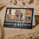 Compartilhe saudações de Ação de Graças com nosso cartão de saudação de fotos festivo. Design apresenta três fotos favoritas em um layout de colagem, com "agradecido, grato, abençoado" sobreposto em letras brancas em um fundo de quadro chantagônico rústico. Personalize a frente com seu nome de família, o ano e uma saudação personalizada (mostrada com "Ação de Graças Feliz"), e adicione uma mensagem pré-impressa ao dentro.