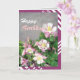 Um cartão muito bonito e romântico do aniversário com os columbines cor-de-rosa e brancos.