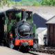 Um design fotográfico de um belamente restaurado trem verde a vapor.