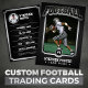 Celebre o seu jogador de futebol favorito com este moderno e elegante cartão de troca de futebol prateado. Apresentando um design ousado, realçado a prata, com um fundo preto, este cartão é perfeito para mostrar as estatísticas e realizações do seu jogador. Personalize-o com a foto do jogador, nome, número, posição, cidade natal, altura, peso, data de nascimento, treinador e uma citação personalizada. Este cartão é uma forma excelente de criar uma lembrança única e duradoura para qualquer fã de futebol.