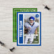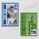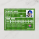 Seja como os profissionais, tendo seu próprio costume, quarterback de futebol, cartão de troca. Este cartão desportivo pode ser editado para mostrar fotografias de si próprio na frente e no verso, juntamente com as estatísticas pessoais do seu quarterback de futebol no verso. A frente do cartão tem um design de zona final de futebol no lado esquerdo, onde você pode inserir um nome de sua equipe em uma carta esportiva. O fundo da carta apresenta um campo de futebol de grama listrada.