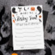 Adicione um toque divertido ao seu chá de fraldas de halloween com este cartão de jogo de comida de bebê preto assustador! Perfeito para ideias de chás de fraldas temáticos de halloween, este jogo ajustado qualquer tema de chá de fraldas de halloween, de ideias de chás de fraldas assustadoras a ideias de chá de fraldas. Quer você esteja planejando um chá de fraldas duplo ou comemorando porque um pouco de bu está quase vencendo, isso é algo que precisa ter. O excelente para um bebê é criar ideias de chá de fraldas, o bebê está a criar ideias de chá, ideias de chá para bebês — porque um bebê está a criar!