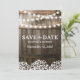 Cartões de compromisso de casamento com guirlanda de luzes rústicas com uma cena de celeiro rural, barril de carvalho, luzes cintilantes, bebê-respiro, seu monograma e um modelo de texto moderno. Você encontrará itens correspondentes mais abaixo na página, se não conseguir encontrar o que procura, por favor entre em contato.