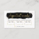 Cartão de lembrete de compromisso de salão chico com fonte moderna de script, efeitos dourados e fundo de aquarela preta. Este cartão de compromisso de beleza luxuosa inclui 3 ranhuras para compromissos para adicionar a data e a hora dos compromissos seguintes dos seus clientes. Crie cartões de coleira, sobrancelha ou unhas modernos com este modelo elegante.