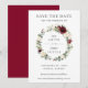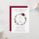 Este cartão de compromisso de casamento elegante apresenta uma linda grinalda floral em aquarela marfim e borgonha. Concebido para combinar com a nossa coleção de casamento Rustic Burgundy. Personalize-o com os seus detalhes de forma fácil e rápida, basta pressionar o botão personalizar para reorganizar e formatar o estilo e a colocação do texto. (c) The Happy Cat Studio