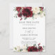 Este cartão de compromisso de casamento elegante apresenta uma bela composição floral em aquarela marfim e marrom. Projetado para combinar com nossa coleção de casamento Rustic Burgundy. Personalize-o com seus detalhes de forma fácil e rápida, basta pressionar o botão personalizar para reorganizar e formatar o estilo e a posição do texto. (c) The Happy Cat Studio