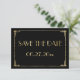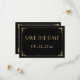 Convites de compromisso de casamento em ouro folha Art Déco estilo O Grande Gatsby (8,89 cm por 12,7 cm) com texto personalizável impresso em fundo preto