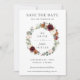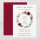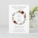 Este cartão de compromisso de casamento chic apresenta uma bela grinalda floral em aquarela marfim, laranja queimada, rosa e borgonha. Projetado para combinar com nossa coleção de casamento Rustic Blooms. Personalize-o com seus detalhes fácil e rapidamente, basta pressionar o botão personalizar para reorganizar e formatar o estilo e a colocação do texto. (c) The Happy Cat Studio