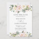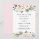 Este cartão de compromisso de casamento apresenta uma bela disposição floral em aquarela rosa e marfim. Concebido para combinar com a nossa coleção de casamento Romantic Blooms. Personalize-o com os seus detalhes de forma fácil e rápida, basta pressionar o botão personalizar para reorganizar e formatar o estilo e a colocação do texto. (c) The Happy Cat Studio