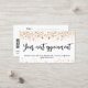 Fundo branco decorado com falso brilho dourado, faíscas. Texto preto. Voltar: Personalize e adicione seu nome de empresa, número de telefone, email, endereço de site, código qr ao site ou conta de mídia social.