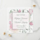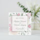 Anuncie a data do seu casamento com elegância moderna. As rosas cor-de-rosa e a folhagem preenchem o fundo, enquanto uma sobreposição é centralizada exibindo os nomes do casal, local do casamento e data. Por trás das informações de salvar a data, há um vislumbre do fundo floral.