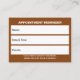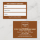 Lembre seus clientes ou clientes para conhecê-lo. Dê-lhes a data e a hora previstas para conhecê-lo. Além de lembrar seus clientes ou clientes dando este cartão de compromisso, crie reconhecimento de nome de marca, anuncie sua empresa ou promova seu nome de marca. Cartão de compromisso que você pode personalizar para colocar seu nome comercial e com espaços vazios para escrever o nome, a data, a hora e os detalhes de compromisso do cliente ou cliente ou a finalidade da visita. A cor é marrom e as cores da fonte são marrom-claro e branco. Para personalizar este cartão de compromisso, faça o upload do logotipo da sua empresa, digite o nome da sua empresa ou empresa, endereço, número de telefone, e-mail e site ou página de mídia social. Verifique a aparência nos lados frontal e traseiro após carregar o logotipo e os textos de digitação. Se a aparência lhe agrada, você pode colocar seu pedido agora. Se você precisar redimensionar e mover o logotipo e os textos para o ajustado neste cartão de compromisso ou em outras formas, estilos e tamanhos que você escolherá, mude na ferramenta design. Você também pode fazer outras alterações de acordo com a aparência preferida na ferramenta design, como alterar a cor do fundo, a cor da fonte e o estilo da fonte.