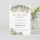 Anuncie seu dia especial com estilo com este elegante cartão “Salve a Data”, adornado com flores cor de rosa suave, folhagens delicadas e uma graciosa escrita em rosa poeirento. O design romântico define o tom para o seu casamento futuro, deixando uma primeira impressão duradoura nos seus convidados.