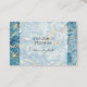 Os cartões de compromisso de cliente na moda no papel grosso apresentam um design de mármore azul e dourado na frente e atrás com as próximas informações de compromisso do cliente, suas informações de contato e ícones de mídia social na parte traseira. Altere o papel, o tamanho e coloque os cantos em quadrado ou ao redor para criar suas próprias placas exclusivas.