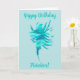 Este cartão de aniversário com o motivo de pintura em aquarela de uma silhueta de onda em concha azul-aqua adicionará um toque cintilante de charme costeiro aos seus cartões que irão alegrar a sala de estar, cozinha, sala de jantar, quarto, banheiro, escritório, estúdio de arte, berçário, varanda e muito mais da família e amigos! Este design oceânico também fornecerá um complemento de férias náuticas para o interior de seu catamarã, barco ou trailer. Sua família e amigos ficarão encantados em receber seus cartões de aniversário personalizados e únicos com tema costeiro! Todos ficarão emocionados em receber seus Parabéns de Aniversário da praia!