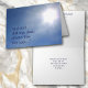 Esta placa de simpatia apresenta as palavras reconfortantes da Revelação 21:4 na frente e continuadas no topo do dentro. A frente do cartão tem também uma bela imagem fotográfica do sol brilhante contra um céu azul profundo. A mensagem dentro pode ser personalizada por você para dizer o que quiser, ou pode ser deixada como está.