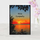Uma fotografia de um pôr do sol pacífico de laranja e lago de ouro, emoldurada por galhos de árvores, é o tema do meu "Cartão de condolências de Lake Sunset". O dentro do cartão diz "Sinto muito pela sua perda". Eu capturei esta cena ao longo da costa de Beautiful Lake Winnebago em Quinney, Wisconsin.