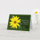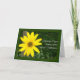 Uma fotografia de uma flor amarela clara (Rudbekia) contra um fundo verde-escuro faz deste um cartão alegre para quem está a ser submetido a tratamento para o cancer. O texto, a branco, diz: "Pensando em você durante o tratamento do seu Cancer" e o dentro é o vazio da sua própria mensagem.