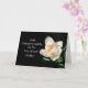 Um Cartão de condolências para a perda de uma Mãe, com uma tulipa rosa pálida e letras brancas em um fundo preto. O dentro é o vazio deixado para a sua própria mensagem.