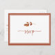 Cartão-postal de RSVP Boho para casamento. Prepare-se para o seu casamento de outono com este cartão-postal de RSVP simples e elegante. Com folhas de laranja queimada e terracota pintadas à mão em aquarela sobre um fundo branco, o design deste cartão de inclusão certamente impressionará seus convidados. A borda minimalista adiciona um toque extra de elegância ao design, perfeito para o seu dia especial. Encontre produtos coordenados na Coleção de Casamento de Folhas de Outono Simples Terracota.