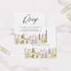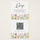Elegante cartão de confirmação de presença de casamento com flores silvestres boho em aquarela rústica, e um código QR que direciona os convidados para o site de casamento onde poderão responder online.