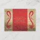 Este lindo cartão de confirmação de presença com dragão apresenta dois belos dragões nas laterais. Os cartões são vermelhos e dourados com escrita elegante. Os dragões podem parecer agressivos para outras sociedades, mas a cultura oriental vê os dragões como mágicos e os considera protetores dos inocentes contra espíritos malignos.
