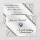 Um design de imagens Digitalbcon com um tema de cores de prata e diamante com uma variedade de imagens personalizadas, formas, padrões, estilos e fontes neste cartão de confirmação de presença para Bodas de Diamante único. Este cartão especialmente projetado vem completo com um design correspondente no verso com letras de texto personalizadas para se adequar à sua ocasião especial.