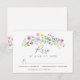 Complete seu conjunto de casamento com este encantador cartão de confirmação de presença com flores silvestres em aquarela, apresentando um delicado spray de flores pintadas à mão em rosa, roxo, azul e amarelo. Os suaves acentos florais enquadram os detalhes da resposta em um layout limpo e moderno que é fácil para os convidados preencherem. Ideal para casamentos rústicos, boho ou de jardim, este cartão combina perfeitamente com o convite correspondente e a coleção completa de flores silvestres.
