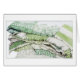Uma colcha verde dobrada ou coberta com uma variedade de padrões em suas praças, um presente maravilhoso para quem ama conforto! Carimbo, etiqueta, imã, porta-bocas, poster.