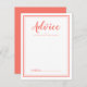 Um novo cartão de conselho, simples e elegante, apresenta uma design minimalista com uma dupla borda de quadros em coral de tendências em um fundo branco nítido. Personalize com seus nomes. Espaço previsto para o seu convidado adicionar seus conselhos, desejos e assinatura. A inscrição e o guião estão no coral. A parte traseira da placa corresponde a um coral sólido.