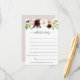 O cartão de atividade do chá de fraldas floral Chic corresponde à nossa coleção de chás de fraldas Blush Romance e apresenta uma fronteira superior de flores cor-de-água cor rosa e burgundy marsala e folhagem verde esmagadora. O cartão "Desejos por bebês" incita os hóspedes a compartilhar suas esperanças e sonhos pelo bebê no caminho. Personalize com a mãe o nome e a data do chá.