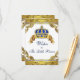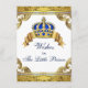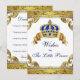 Cartão de desejos do príncipe para o bebê com bela coroa real azul e dourada e faixa em um fundo dourado rico e elegante. Você pode personalizar este cartão de desejos do príncipe para o bebê para o seu evento simplesmente adicionando seus detalhes no estilo de fonte e cor de sua escolha. Você também pode adicionar uma cor de fundo. Peça aos seus convidados para preenchê-los e guardá-los como lembrança do bebê.