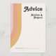 Este cartão de conselhos de casamento retrô moderno dos anos 70 é perfeito para o seu casamento simples e vintage com tons de laranja, dourado rosado e rosa bege. Projetado com elementos de um arco clássico e colorido boêmio e listras minimalistas descoladas. O design tem um toque único e abstrato de praia tropical, ótimo para qualquer casamento de primavera, verão ou outono. O produto é personalizável, pois o gráfico é um arquivo SVG, então sinta-se à vontade para alterar todas as cores! Adicione sua própria arte, fotos ou gráficos. Se tiver alguma dúvida sobre o design deste produto, por favor, entre em contato conosco!