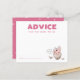 Cartões de conselho de baby shower com tema de dinossauro fofo com arte ilustrada à mão de triceratops rosa saindo de um ovo. Este design de tema rosa é ótimo para um chá de bebê de menina.