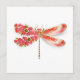 Articulado artificialmente, ouro, libélula joalhada com vermelho e asas decoradas com cereja japonesa vermelha, florescente e joalhada sobre fundo branco. Dourada Dragonfly.