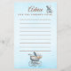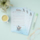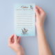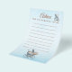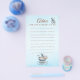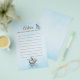 Este design suave em azul foi inspirado na decoração clássica de berçário e no charme atemporal de contos de fadas. Um ursinho gentil e uma carruagem de bebê em estilo vintage criam uma sensação calma e elegante—perfeita para coletar desejos sinceros e conselhos doces de entes queridos em um chá de bebê.