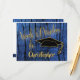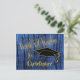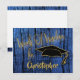 Dê aos seus convidados na sua festa de formatura a oportunidade de expressarem suas palavras de sabedoria ou conselhos para o formando. Padrão de madeira rústica na moda azul com boné de formatura e punho. Crie o seu próprio cartão de boas intenções de graduação em monograma simplesmente acrescentando o nome dos seus formandos.