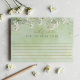 Crie um souvenir significativo com este cartão de conselhos para a noiva com flor silvestre verde. Projetado com flores de água-marinha em tons suaves e delicadas flores brancas, este cartão romântico inspirado em jardins convida os convidados a compartilhar palavras sinceras, desejos e conselhos de casamento para a futura noiva.