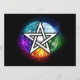 Pentagrama luminoso desenhado artificialmente com cinco elementos mágicos, água, terra, fogo, astral, ar sobre fundo negro. Pentagrama Wiccan. Wicca
