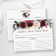 Cartão de Receita Floral Azul Marsala, Burgundy, com Aquarela, para Chá de panela