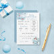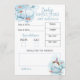 Cartão de chá de fraldas de baleia azul e branca "predições e conselhos". Para personalizá-lo ou alterar o texto, as cores e as fontes, clique no botão para editar a design. Inclui a data de nascimento, o tempo, o peso, o comprimento, a cor do olho, a cor do cabelo, a semelhança e o espaço para adicionar uma mensagem de conselho aos novos pais.