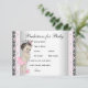 Previsões para cartões de chá de fraldas para bebês e conselhos para os pais com uma bela princesa de vintage bebê vestindo calças cor-de-rosa e arco num fundo rosa bonito de rendas de cinza. Estas previsões bonitinhas de princesa para bebês e cartões de aconselhamento podem ser personalizadas para o seu evento. Basta que seus convidados os encham e o mais próximo com previsões ganha um prêmio. Não se esqueça de guardar todas as cartas e guardar como guardião do bebê.