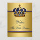 O Príncipe deseja um cartão de bebê com linda coroa azul real e dourada em um rico e elegante fundo azul real e ouro. Você pode personalizar este desejo real de cartão de bebê azul e ouro para o seu evento simplesmente adicionando seus detalhes no estilo de fonte e na cor de sua escolha. Você pode adicionar os desejos de sua escolha. Peça aos seus hóspedes que os encham e os salve como guardião do bebê.