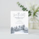 Save the date card with watercolor pine trees is versatile for rustic wedding stationery. Slate gray forest trees are ideal for winter wedding themes. Pair with other outdoorsy pine needle wedding stationary in this collection.