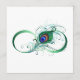 O símbolo do infinito com uma pena brilhante, verde, de pavão artístico sobre um fundo branco. Tatuagem.