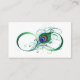 O símbolo do infinito com uma pena brilhante, verde, de pavão artístico sobre um fundo branco. Tatuagem.