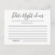Esses simples cartões noturnos de data de caligrafia negra parecerão excelente em uma recepção de casamento ou chá de panela rústica ou moderna. Personalize estas cartas com os nomes da noiva e do noivo.