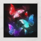 Cartão De Conselho Três Borboletas brilhantes sobre o fundo noturno